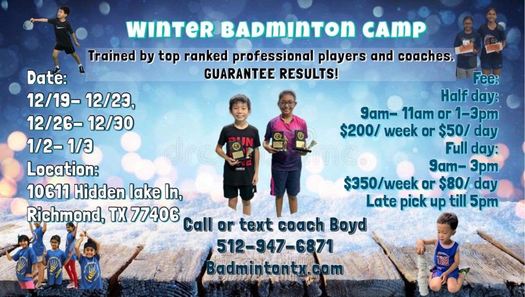Join us for our Winter Badminton Camp at Houston Badminton Academy!