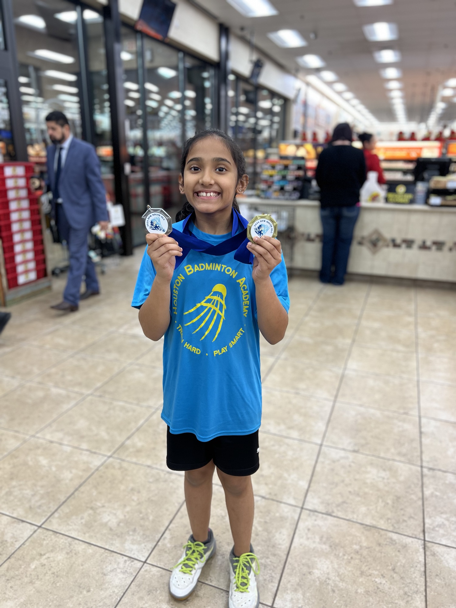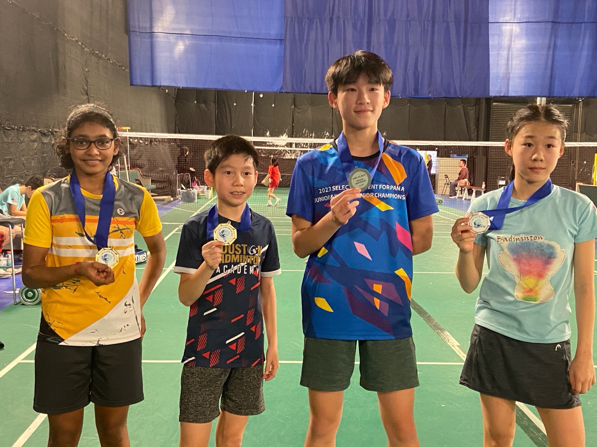 此外,Max和Diksha在15岁以下混合双打项目中胜利,展现了出色的团队合作和技巧。值得注意的是,尽管只有12岁,Jade和Diksha在15岁以下项目中赢得了金牌,展示了出色的才华和决心。
