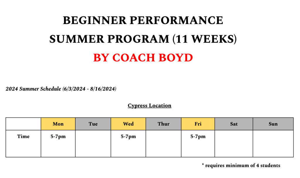 2024 Summer Schedule
